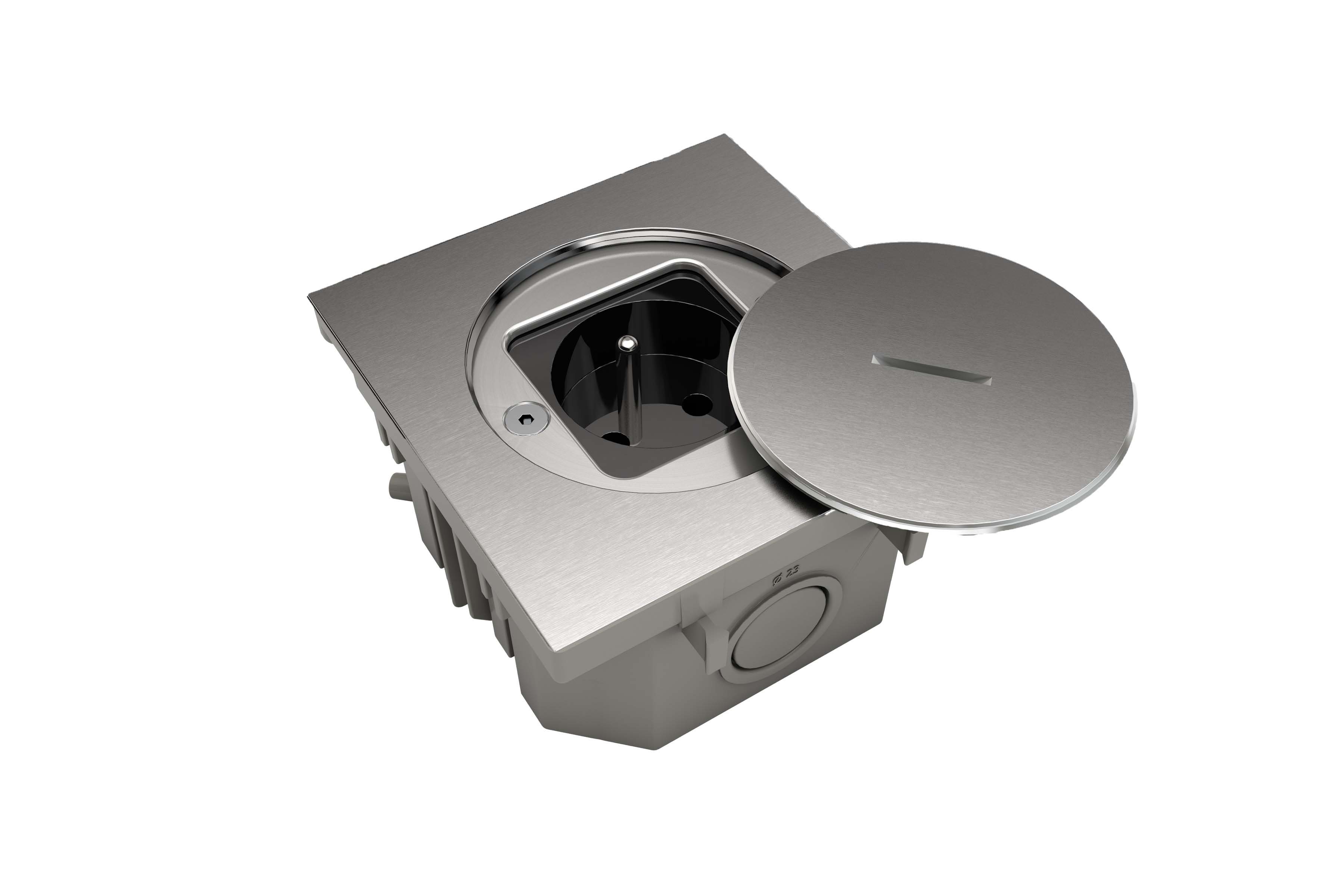 MODELEC - Prise de sol étanche BUBOX LINE Inox 316L Brossé Couvercle + bouchon -2P+T FR - BFL102/2