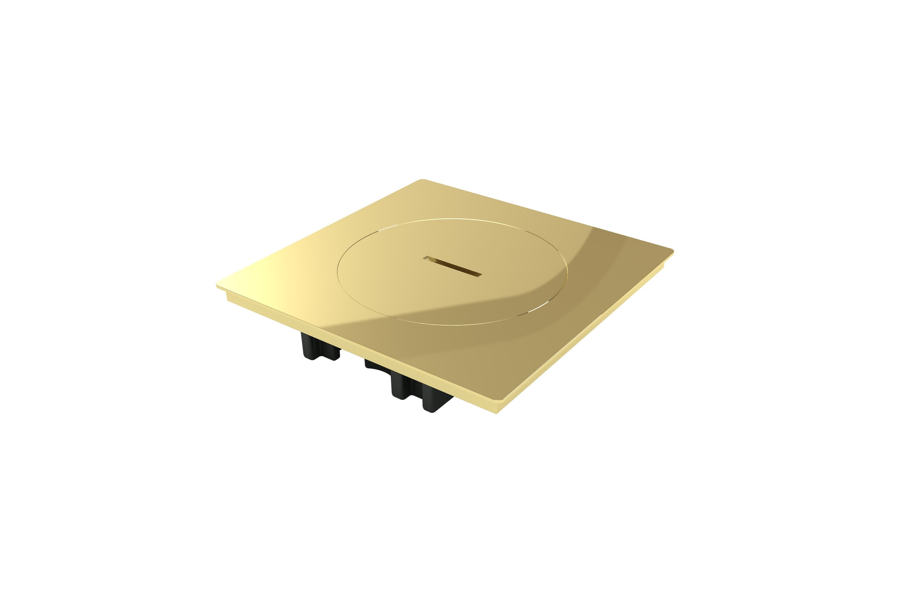 Prise de sol étanche BUBOX LINE Laiton Brut Brossé. Composée d'un couvercle + bouchon à ouverture standard + mécanisme prise RJ45-6A Noir. Certifié IP67 (prise fermée), IP20 (prise ouverte) et IK10. Fabriqué en Belgique.