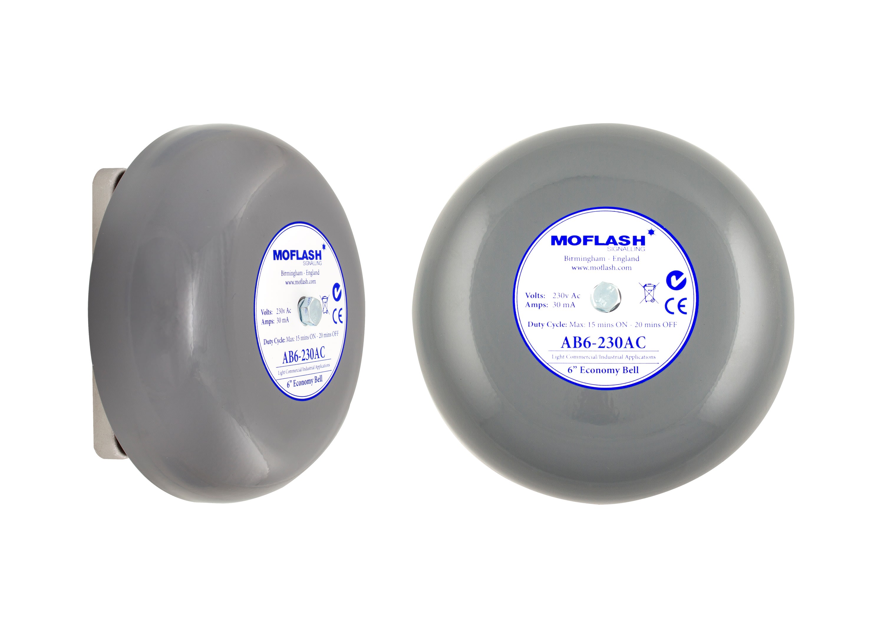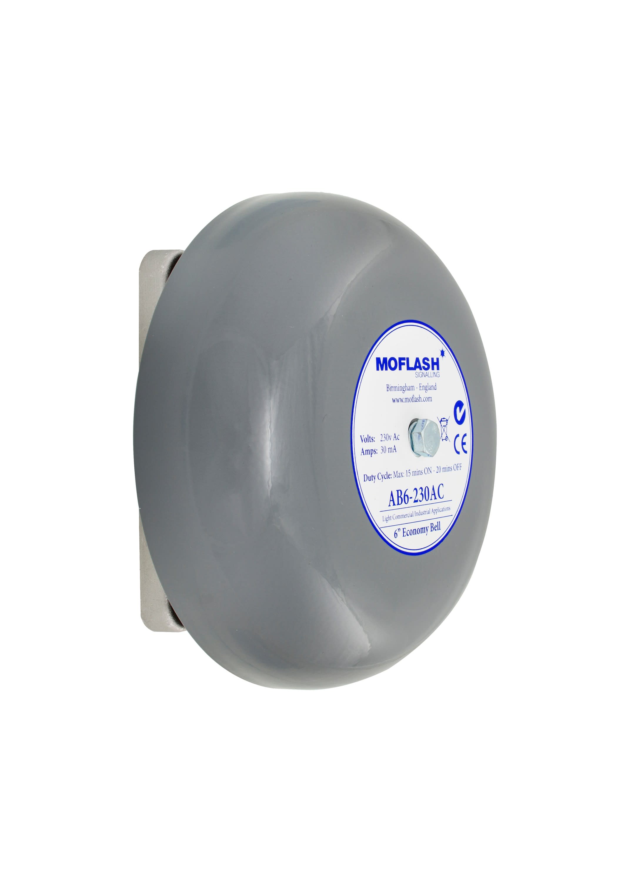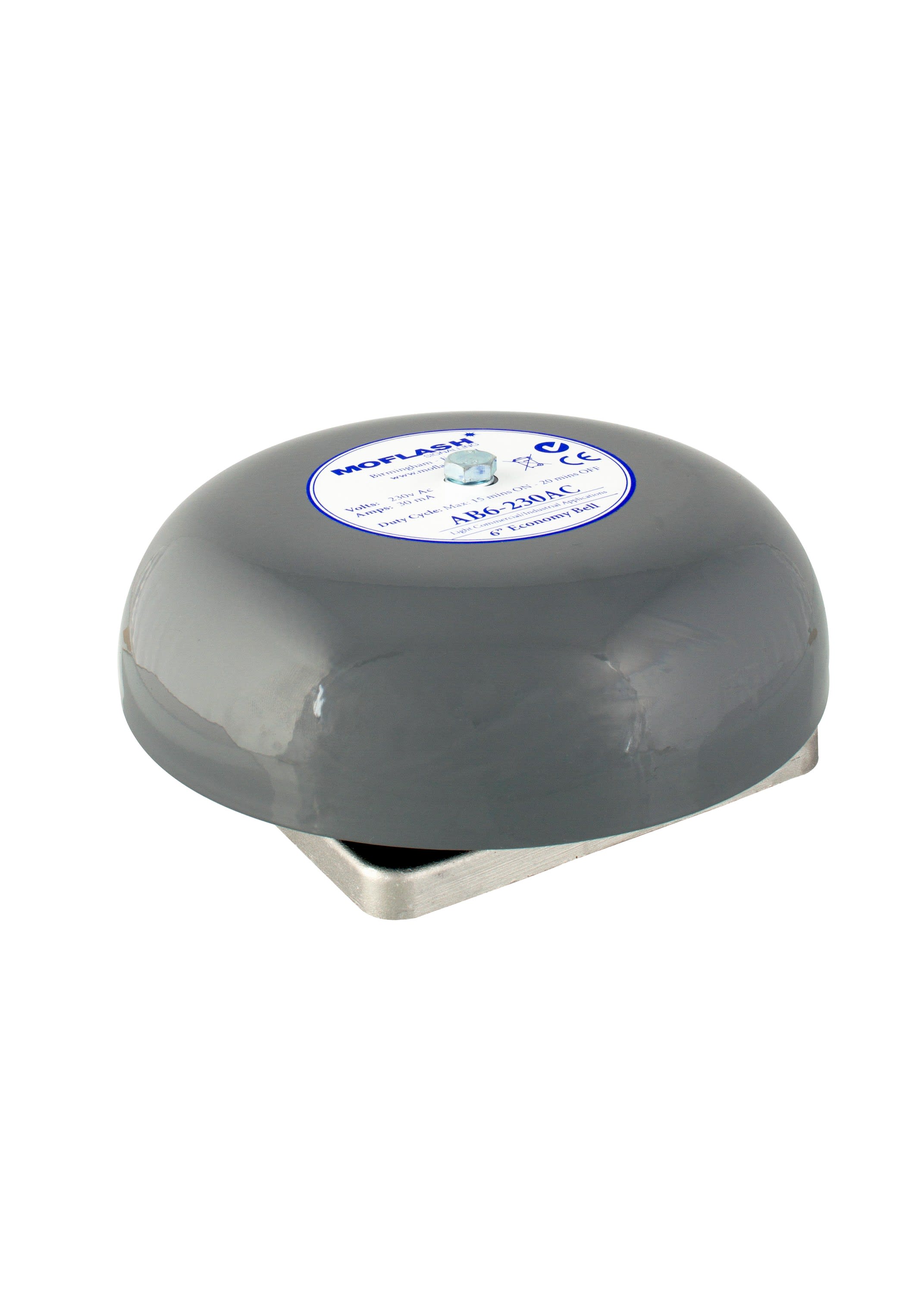 Moflash Signalling - Cloche ECO grise AB6 - 230Vca - 100dB - Gong 6 pouces en acier - IP44 - AB6-230AC