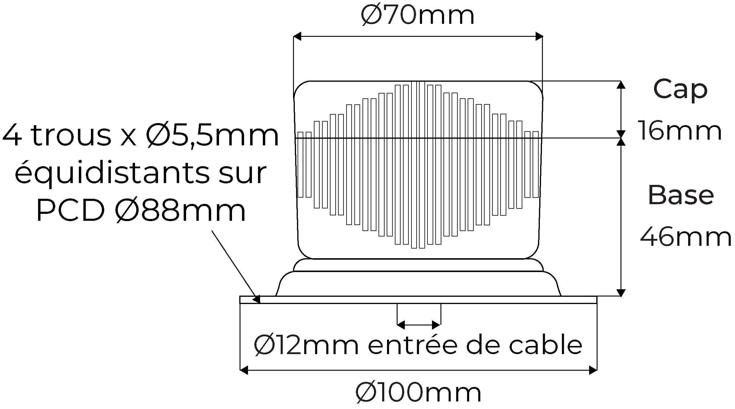 Moflash Signalling - Colonne lumineuse 70mm LED-TLM - Module orange - 12-24Vcc - 18 LED IP65 - LED-TLM-02-01