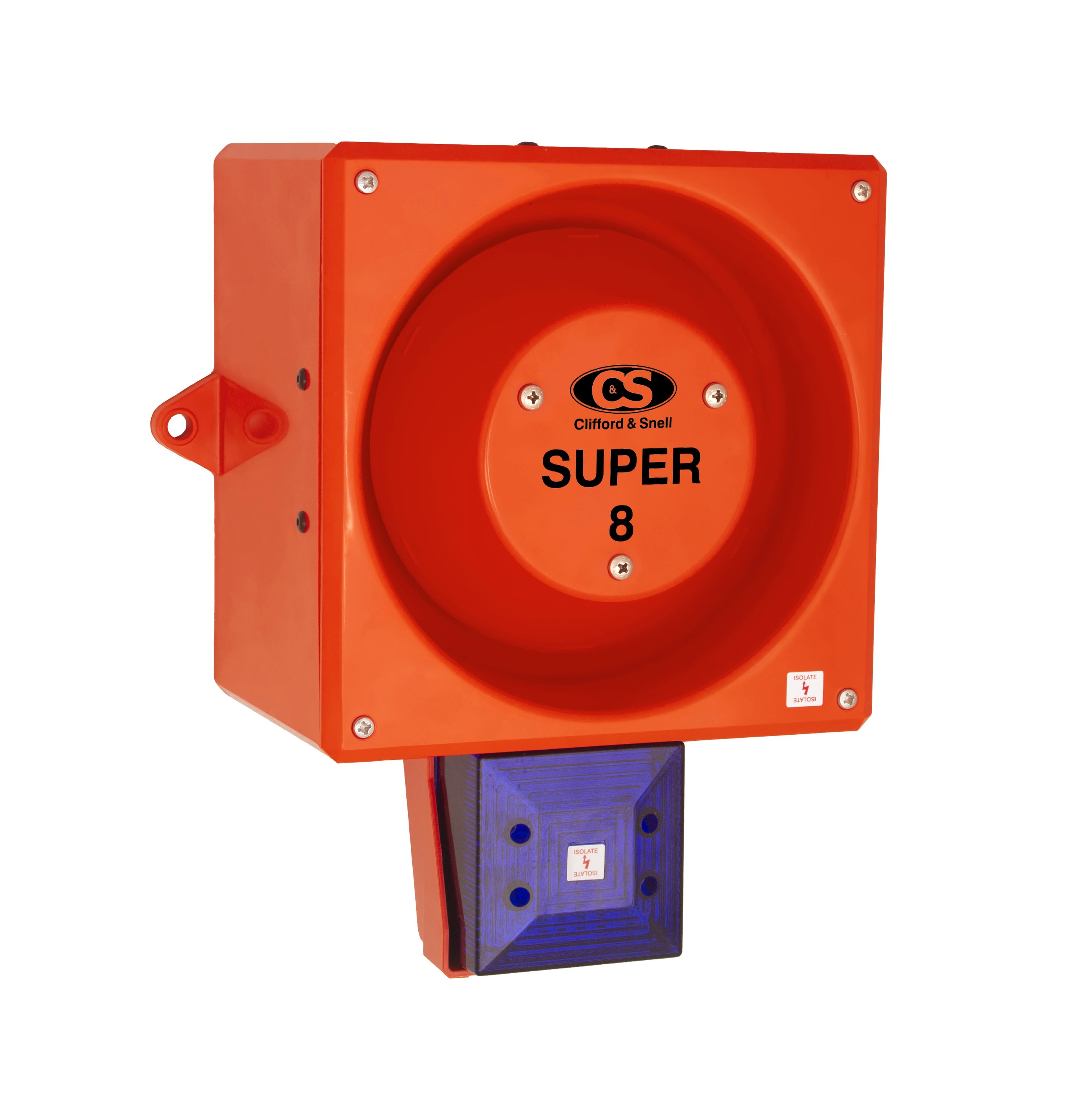 Cet avertisseur sonore et lumineux combiné fait partie de notre gamme YODALIGHT 80 Super Hi-Vis de la marque Clifford and Snell. Ce dispositif combiné acoustique et visuel est alimenté en 115 Vca. Il offre une puissance sonore jusqu'à 120dB en fonction de la tonalitée choisie parmi les 32, ainsi qu’une puissance lumineuse de 25 LED grâce à son feu flash LED et sa lentille/verrine de couleur bleu. Composée de son boîtier en ABS et polycarbonate rouge ignifugé ainsi qu’un indice de protection IP66, cette sirène électronique et visuelle YL80/LL/B/RF/HV/SU/WR est parfaitement adaptée pour une utilisation industrielle/maritime à l’intérieur comme à l’extérieur. Ce combiné est équipé d'un système d'alarme à 2 niveaux et permet donc une polyvalence dans la signalisation sonore. Le 2ème niveau (tonalité 2) est choisi indépendamment du 1er niveau (tonalité 1) via un commutateur DIL.- Série : YL80 Super Hi-Vis - Marque : Clifford and Snell - C&S- Type de signal : Avertisseur lumineux et sonore/Combiné sirène & feu à LED- Tension d’alimentation : 115 Vca- Puissance sonore : 120dB- Source lumineuse : 25 LED- Tonalités : 32- Fonctionnement : Clignotant (Flash)- Fréquence flash : 60 ou 120 FPM- Candela : 10.27 Cd- Couleur de la lentille : Bleu- Matériau : Plastique ABS FR UL94 5VB- Couleur : Rouge orangé- Indice de protection : IP66- Température de fonctionnement : -35 à +70 °C- Conformité : CE, Ctick mark, BSI, UKCA, MED UK, MED EU, EN54-3
