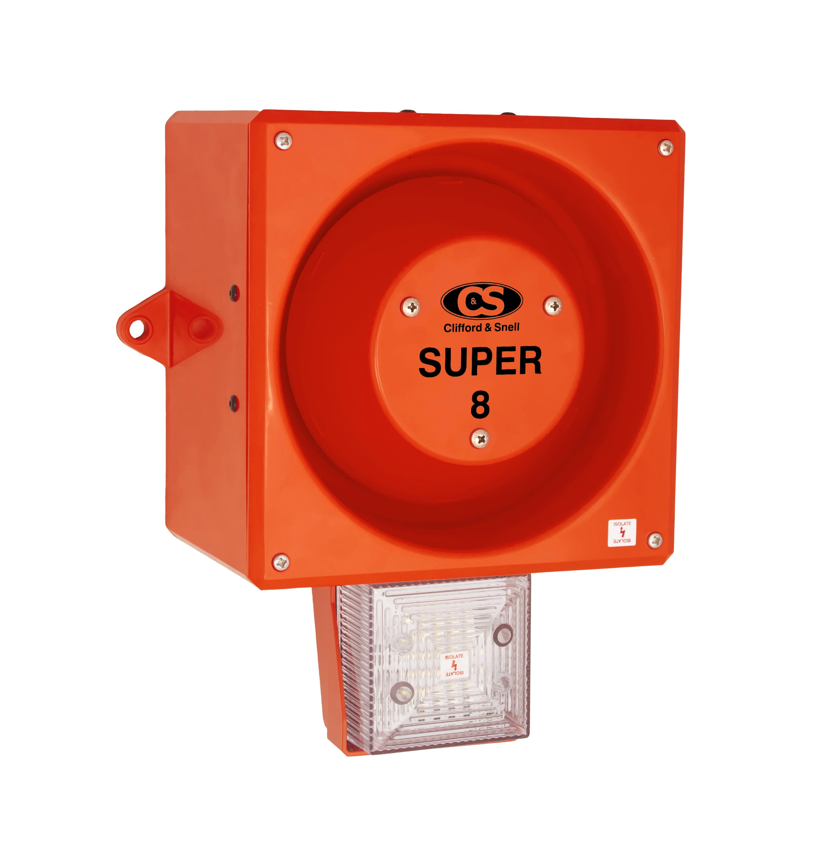 Cet avertisseur sonore et lumineux combiné fait partie de notre gamme YODALIGHT 80 Super Hi-Vis de la marque Clifford and Snell. Ce dispositif combiné acoustique et visuel est alimenté en 24 Vcc. Il offre une puissance sonore jusqu'à 120dB en fonction de la tonalitée choisie parmi les 32, ainsi qu’une puissance lumineuse de 12 LED grâce à son feu flash LED et sa lentille/verrine de couleur transparente. Composée de son boîtier en ABS et polycarbonate rouge ignifugé ainsi qu’un indice de protection IP66, cette sirène électronique et visuelle YL80/DL/C/RF/HV/SU/WR est parfaitement adaptée pour une utilisation industrielle/maritime à l’intérieur comme à l’extérieur. Ce combiné est équipé d'un système d'alarme à 2 niveaux et permet donc une polyvalence dans la signalisation sonore. Le 2ème niveau (tonalité 2) est choisi indépendamment du 1er niveau (tonalité 1) via un commutateur DIL.- Série : YL80 Super Hi-Vis - Marque : Clifford and Snell - C&S- Type de signal : Avertisseur lumineux et sonore/Combiné sirène & feu à Xénon- Tension d’alimentation : 24 Vcc- Puissance sonore : 120dB- Source lumineuse : 12 LED- Tonalités : 32- Fonctionnement : Clignotant (Flash)- Fréquence flash : 60 FPM- Candela : 29.21 Cd- Couleur de la lentille : Transparente- Matériau : Plastique ABS FR UL94 5VB- Couleur : Rouge orangé- Indice de protection : IP66- Température de fonctionnement : -35 à +70 °C- Conformité : CE, Ctick mark, BSI, UKCA, MED UK, MED EU, EN54-3