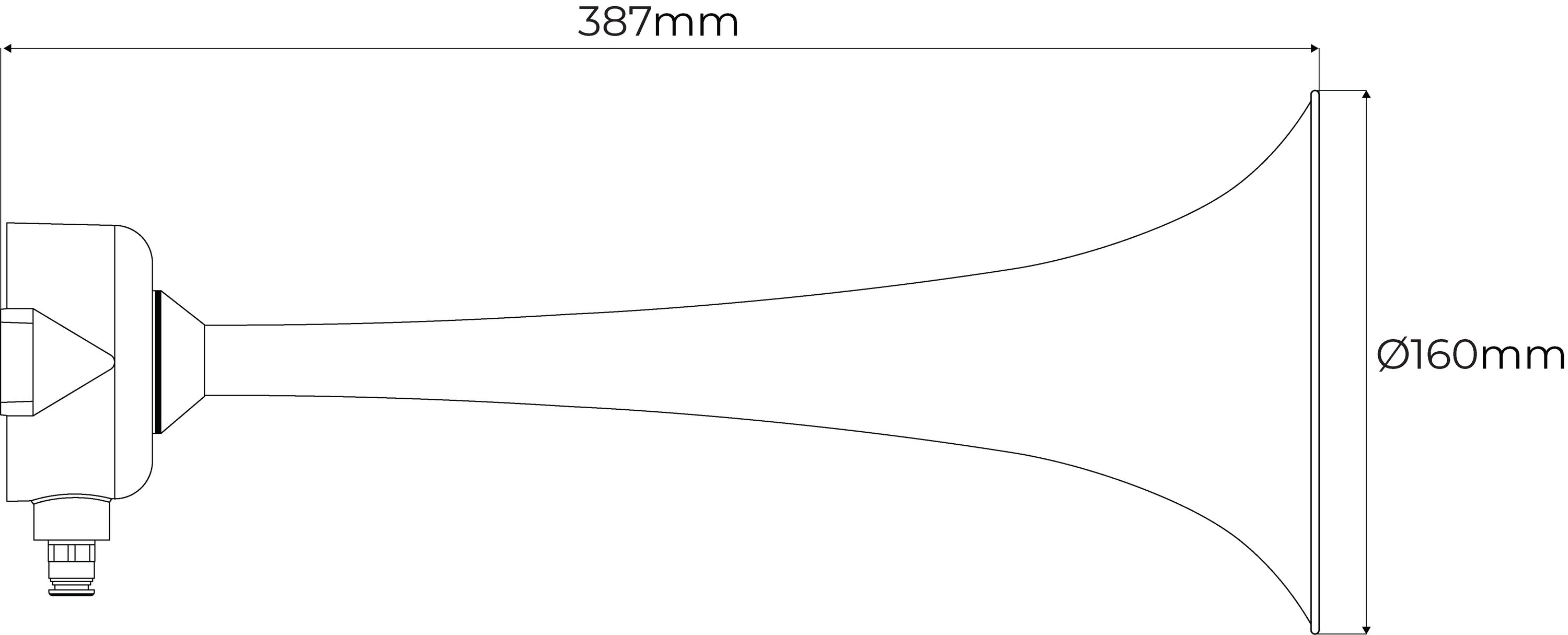 Cet avertisseur sonore industriel fait partie de notre série TDE EX. Cette trompe acoustique pneumatique TDE360EX utilise de l'air comprimé pour produire un son extrêmement puissant, ce qui permet d'attirer l'attention même dans des zones très bruyantes ou à grande échelle. Cette trompe est particulièrement appréciée pour sa fiabilité, sa robustesse et sa capacité à fonctionner dans des conditions extrêmes, telles que des températures élevées ainsi que dans des environnements potentiellement explosifs grace à sa certication ATEX/IECEx.- Série : TDE- Type de signal : Avertisseur sonore/trompe pneumatique- Pression de l’air : 1.5-10 bars- Consommation d’air : 1.5-3.5 l/s- Puissance sonore : 116-132dB- Fréquence : 377 Hz- Fonctionnement : Continu- Montage : Convient pour un montage mural ou sur poteau- Matériau du boîtier : Boîtier à membrane en acier inoxydable 316 avec une corne en laiton- Couleur du boîtier : Noir mat- Indice de protection : IP66- Température de fonctionnement :-30 à +70 °C- Conformité : CE, Ctick mark, ROHS, UKCA, ATEX, IECEX- Signalisation polyvalente : Bateaux de chantier, ferries, signalisation industrielle, signalisation de sécurité et d'alarme, industrie ferroviaire- Groupe II (En surface) : II 2G Ex h IIB + H2 T6 Gb / II 2D Ex h IIIC T85°C Db- Zones: Gas 1, 2 / Poussières 21, 22