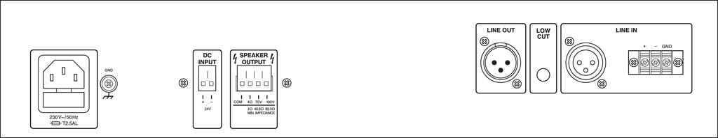 Amplificateur Public adress, 120 W, 100 V, 4 Ω, ampli de puissance, alim 230 V~ / 24 V=
