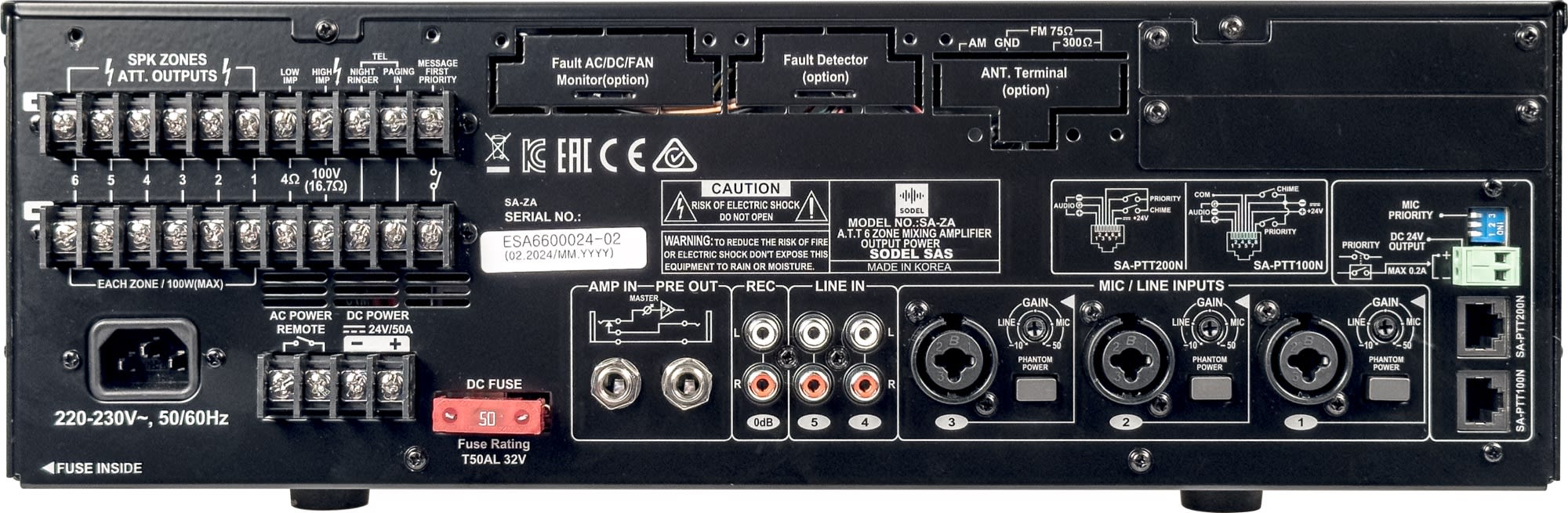 Amplificateur Public Adress, 480 W, 100 V, 4 ?, 6 zones, Alimentation 230 V~ / 24 V=