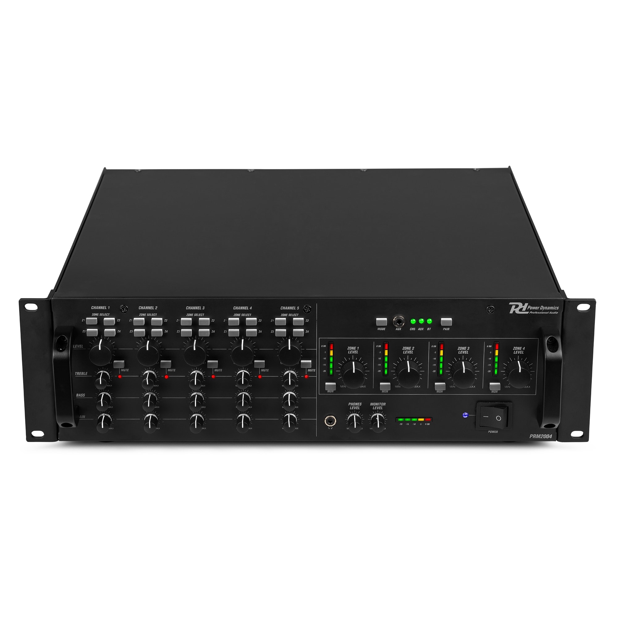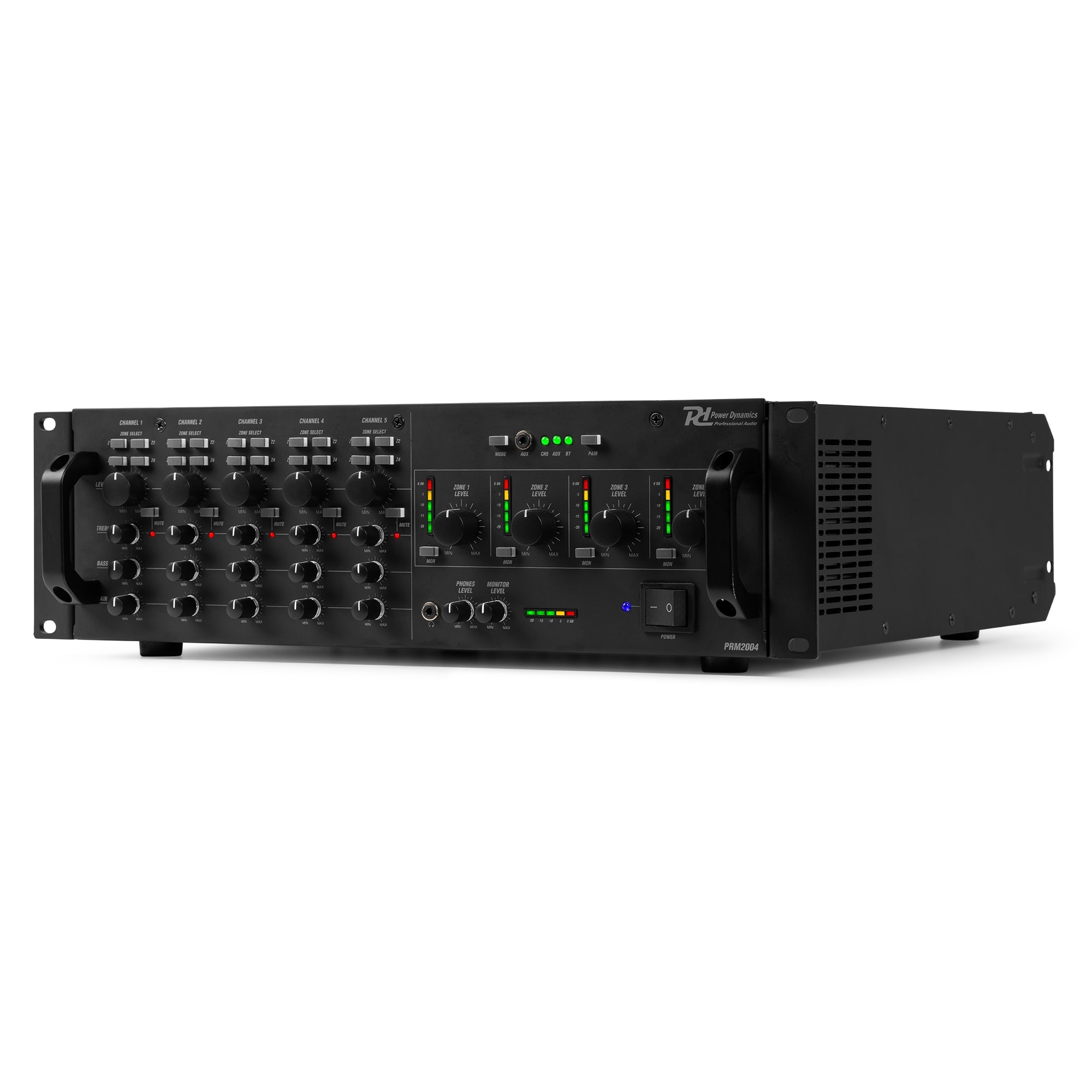 Le PAM2004 est un amplificateur mixeur 4 canaux conçu pour les installations commerciales comportant jusqu'à 4 zones. Que vous souhaitiez apporter des améliorations dans votre restaurant, magasin ou tout autre espace commercial, ce puissant amplificateur offre des performances et une polyvalence exceptionnelles. Avec ses 4 canaux mono, le PAM2004 permet de relier un large éventail de sources audio, microphones, tuners et lecteurs CD à des lecteurs MP3 et smartphones. Chaque canal dispose de son propre réglage de volume, ce qui vous permet d'ajuster les niveaux sonores de chaque zone en fonction des besoins.Le PAM2004 est équipé d'un puissant amplificateur intégré, qui délivre jusqu'à 200 W à chacune des 4 zones de sortie. Il possède également une gamme de fonctions avancées pour proposer le meilleur son, en particulier avec les réglages des graves et aigus, un limiteur intégré pour éviter la distorsion, et une fonction de priorité qui coupe les autres canaux lorsqu'un canal prioritaire est activé.