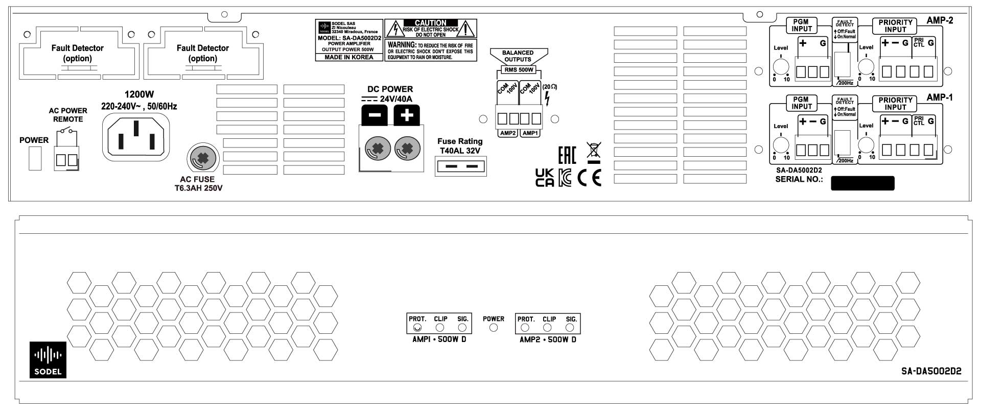 Amplificateur Public Adress, 2 x 500 W, 100 V, ampli de puissance