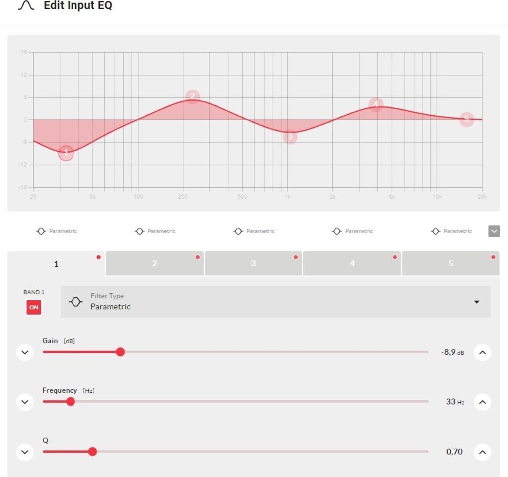 - Egaliseur paramétrique 5 bandes pour l'entrée