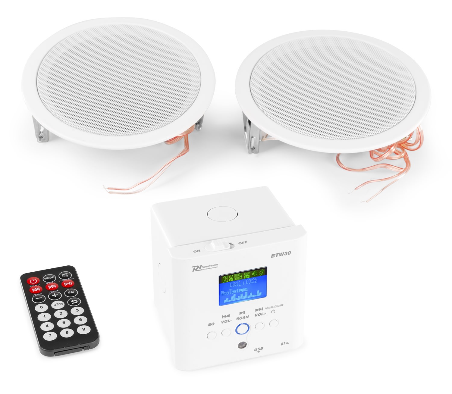 Amplificateur stéréo, montage mural, avec 2 haut-parleurs de plafond, USB, FM, BT, 30 W - BTW30SET