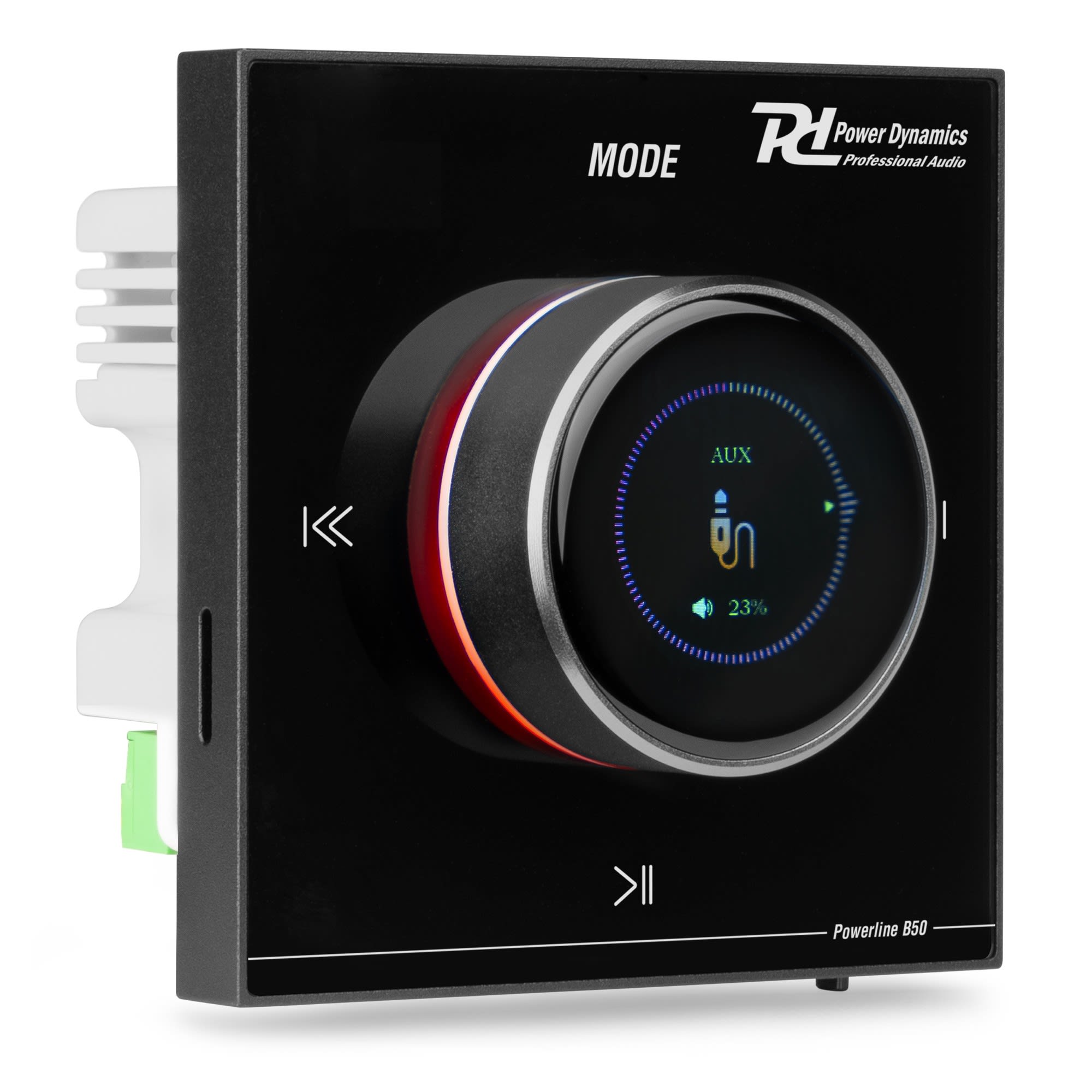 La série Powerline est un système de sonorisation mural avec un amplificateur et un lecteur de musique intégrés. La finition élégante avec un panneau tactile donne un aspect minimaliste, de sorte que votre son est entendu et non vu. Tous les câbles et connexions sont dissimulés dans les murs, à l'abri des regards, évitant ainsi que l’on ne trébuche. Profitez de votre musique préférée à partir de nombreuses sources, telles que streaming BT, USB, carte micro SD et niveau de ligne AUX. La fonction de streaming BT vous permet de vous connecter directement à votre smartphone, tablette, ordinateur portable, etc. L'écran tactile avec LCD vous donne la possibilité de contrôler tous les aspects du système, il suffit de toucher et de partir. Il est également possible d'utiliser la télécommande incluse.
