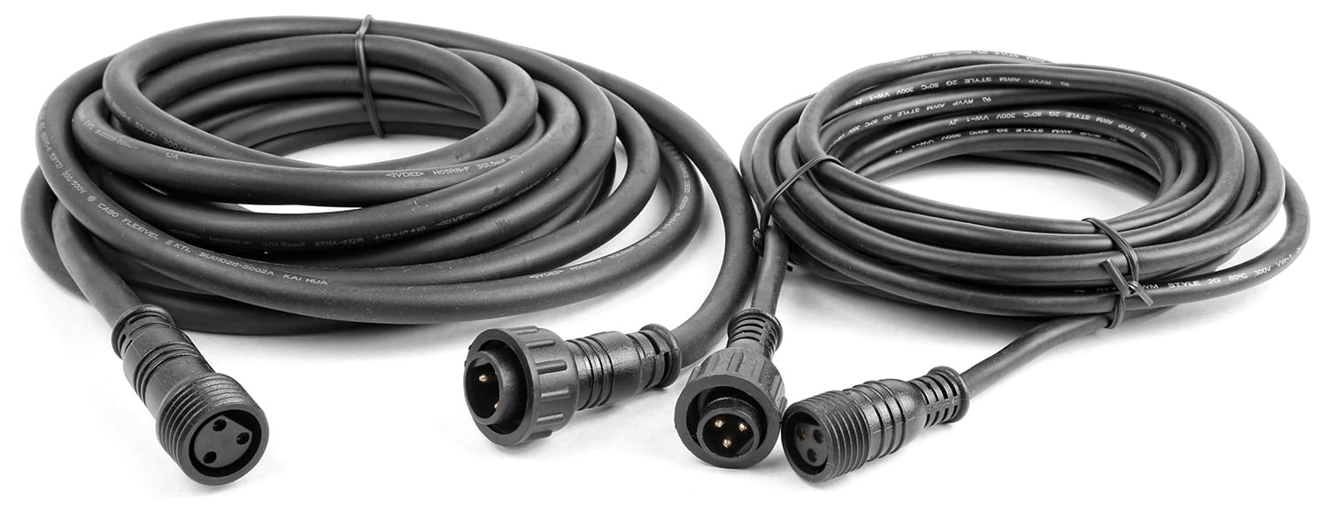 Kit prolongateur pour projecteurs d'extérieur IP65. Ce set comprend un cordon alimentation prolongateur de 5 mètres et un cordon prolongateur DMX de 5 mètres.