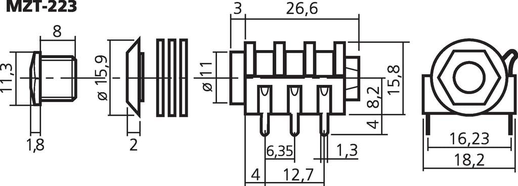 Monacor - Fiche jack 6,35 femelle châssis stéréo - MZT-223