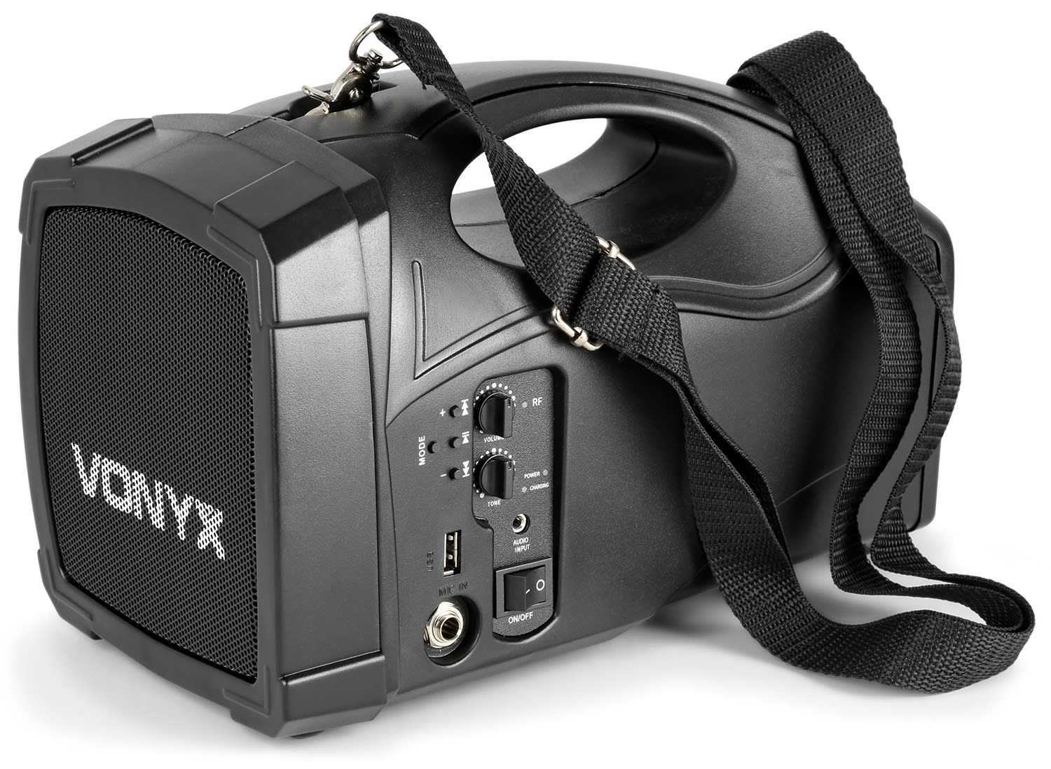 Monacor - Porte voix à bandoulière sur batterie BT/MP3/USB, 1 micro pocket VHF - ST012 - 178.870