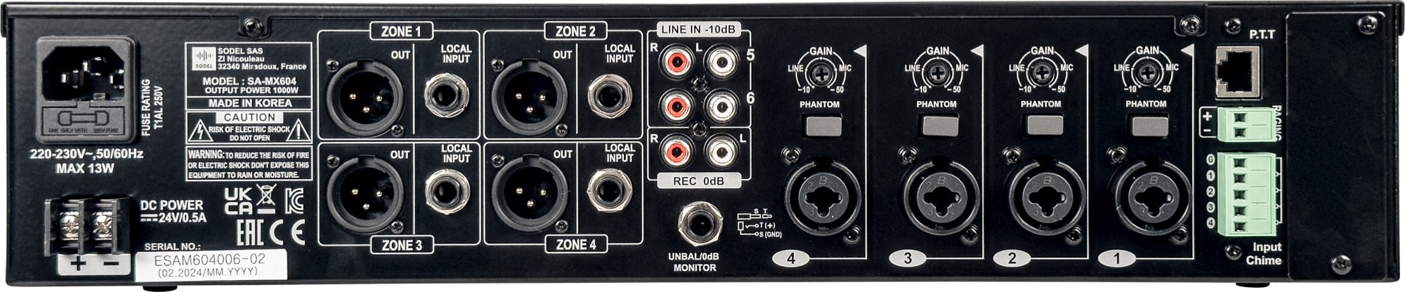 Préamplificateur / Table de mixage matricielle Public Adress 6 canaux 4 zones