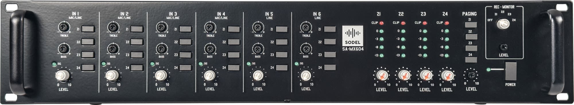 Monacor - Préamplificateur / Table de mixage matricielle Public Adress 6 canaux 4 zones - SA-MAT604