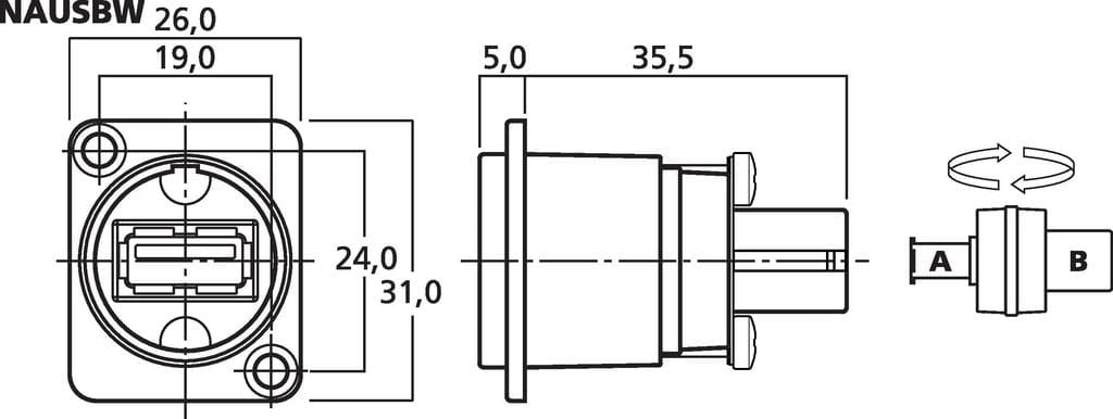 Monacor - Prise châssis USB - NEUTRIK - NAUSBW