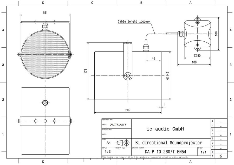 Projecteur de son bi-directionnel, Public adress, 100 V, 10 W, IP56, EN-54-24