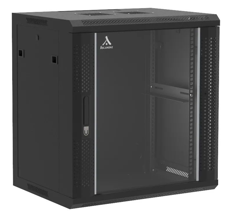Rack pour appareil 19", 12 U, noir, fixation murale, porte en verre