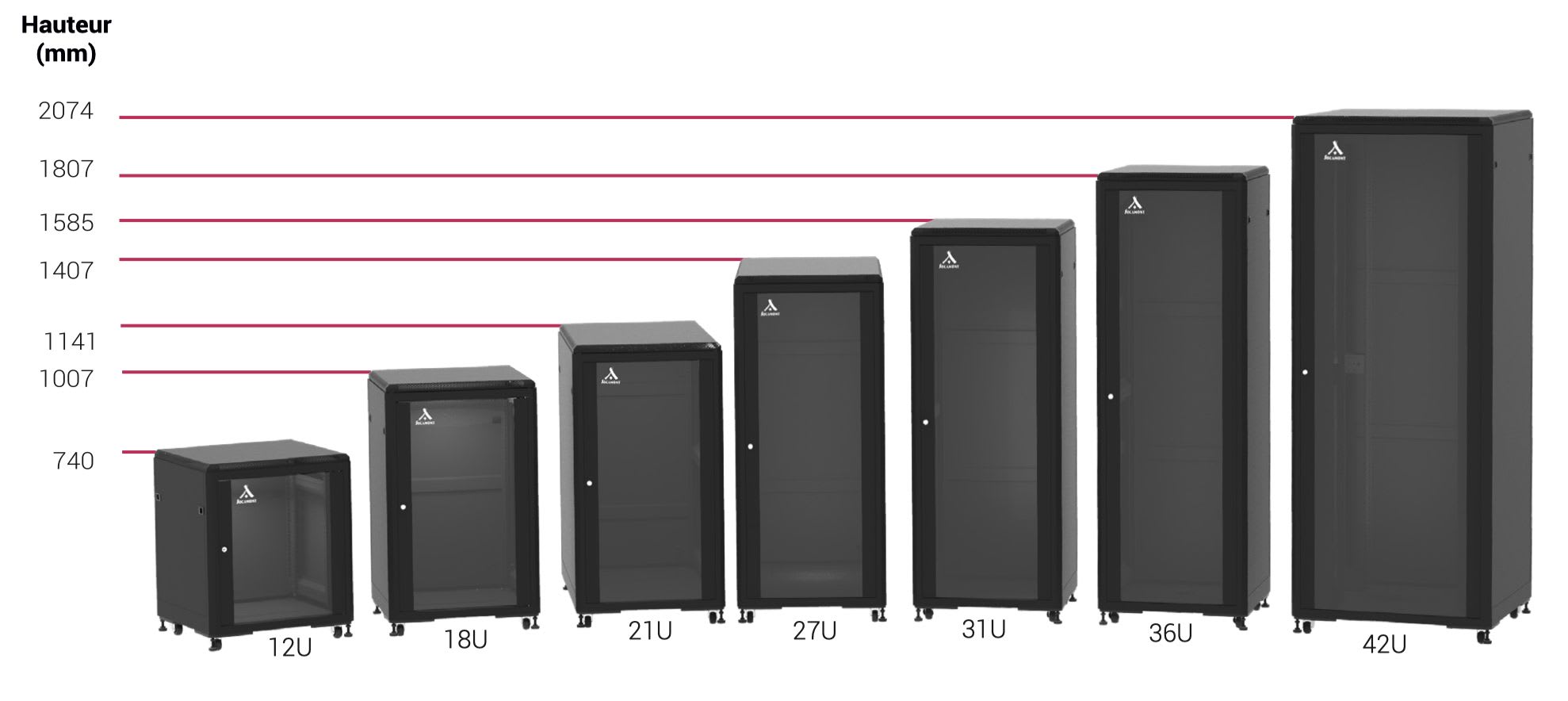 Rack pour appareil 19", 21 U, noir, à poser au sol, porte en verre