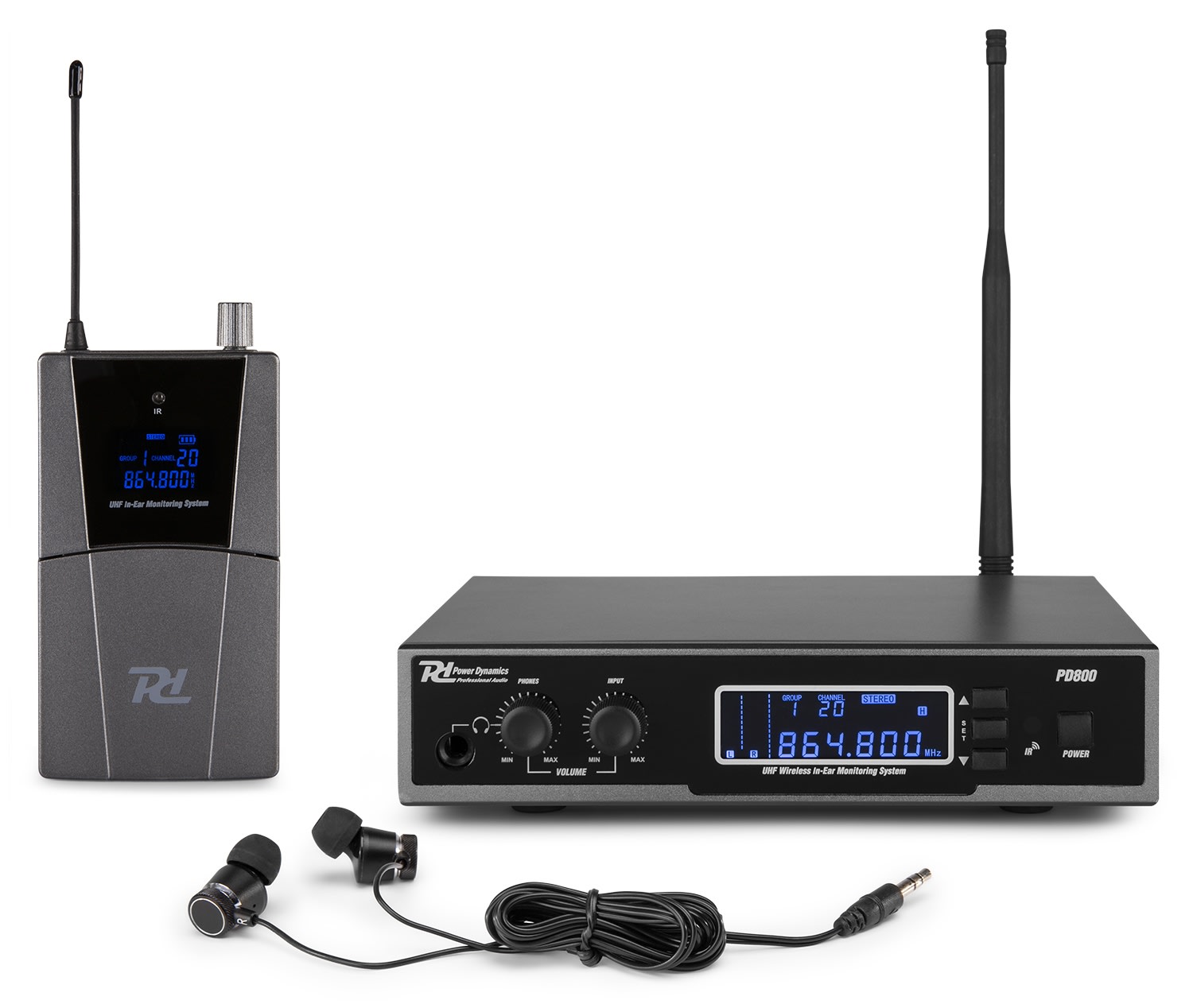 Le PD800 est un système In Ear Monitoring (IEM) de très bon rapport qualité/prix, conçu pour les performances scéniques et la diffusion. En utilisant les fréquences sans fil UHF les plus récentes, les musiciens peuvent se déplacer librement sur scène, tout en s'entendant clairement et sans dommage pour leur audition, grâce à des haut-parleurs pliables. L'ensemble est équipé d'un écran LCD rétro-éclairé facile à lire sur le récepteur et l'émetteur un écouteur isolé est livré. Vous pouvez également utiliser vos propres écouteurs. Ce système est parfait pour des batteurs, guitaristes, chanteurs et autres artistes.