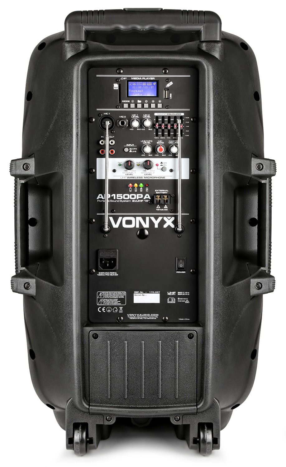 Monacor - Sono portable sur batterie, 15" BT/MP3/USB, 2 micro main UHF - AP1500PA - 170.337