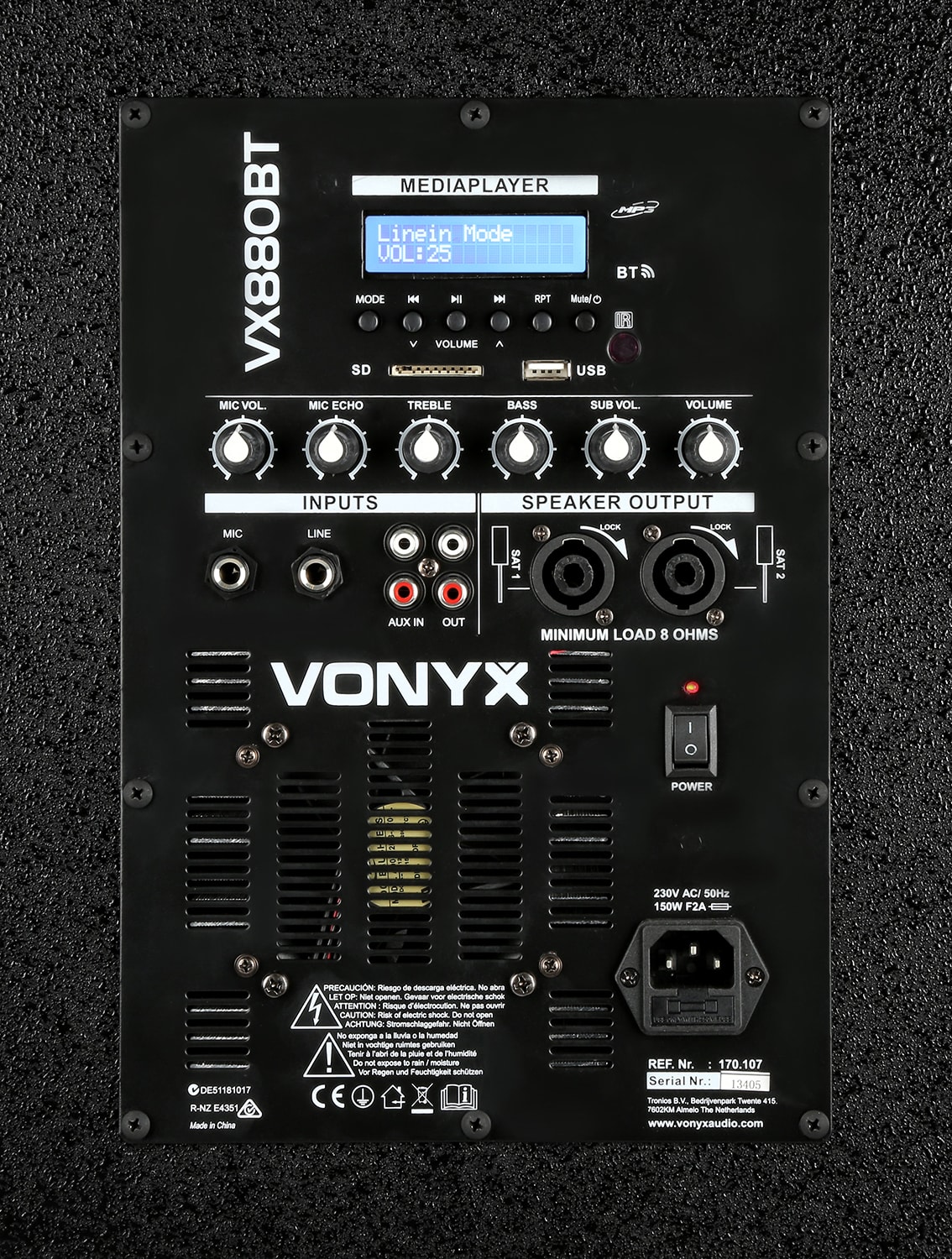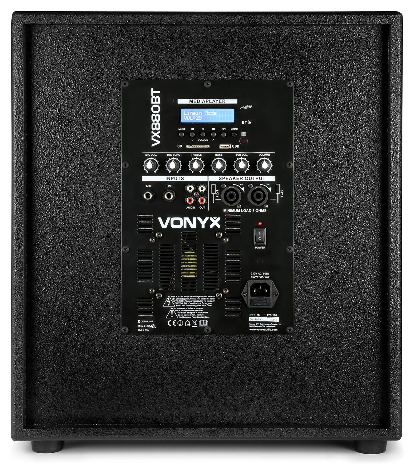 Le VX880BT est un set facile à installer et à transporter. Il comprend un subwoofer 15" et deux colonnes 8". Ces dernières sont équipées de 4 haut-parleurs 2,5" et de 1 tweeter 2,5“. Le récepteur BT intégré vous permet de streamer directement votre musique depuis votre smartphone ou vous pouvez utiliser le lecteur MP3 avec ports USB et SD intégré. Cette enceinte active est idéale pour des DJs, karaokés, présentations ...