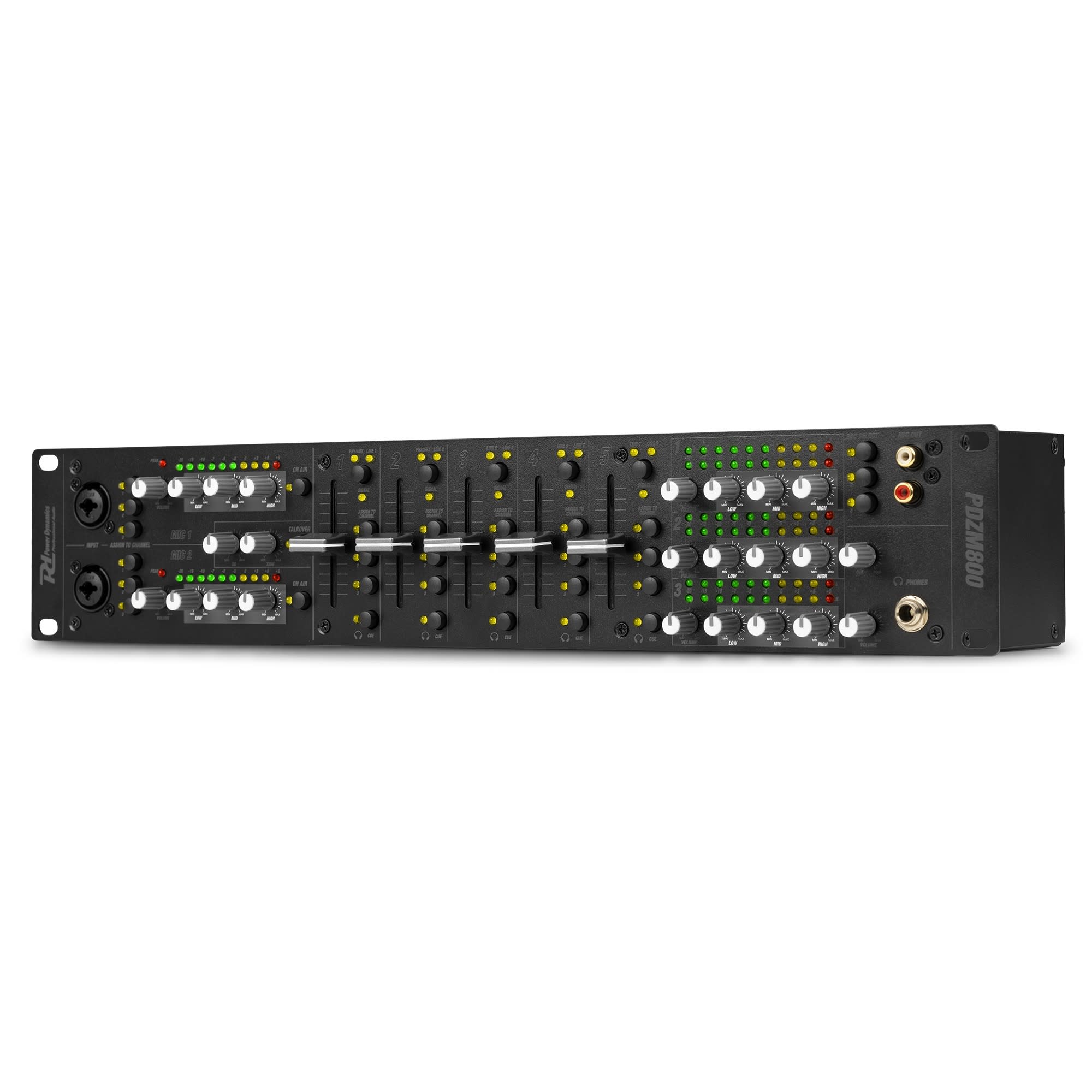 La table de mixage pour installation, PDZM800, offre une très grande diversité pour la gestion audio. Avec trois canaux différents de sortie, elle permet des mixages audio personnalisés sur différents emplacements. 10 entrées ligne peuvent être affectées à des sorties spécifiques, chaque canal peut avoir son mixage spécifique et ses réglages de volume. En façade, deux connecteurs combo XLR pour entrée micro et entrée RCA sur le côté droit pour table de mixage et lecteurs MP3 avec sélecteur d’impédance. Conçue pour des applications telles que salles des fêtes, pubs, restaurants et salles de conférence.