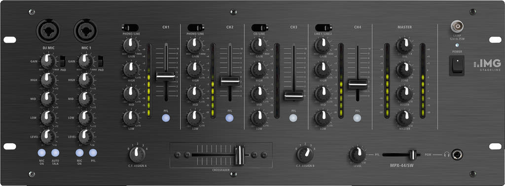 Monacor - Table de mixage stéréo, DJ 6 canaux - MPX-44/SW