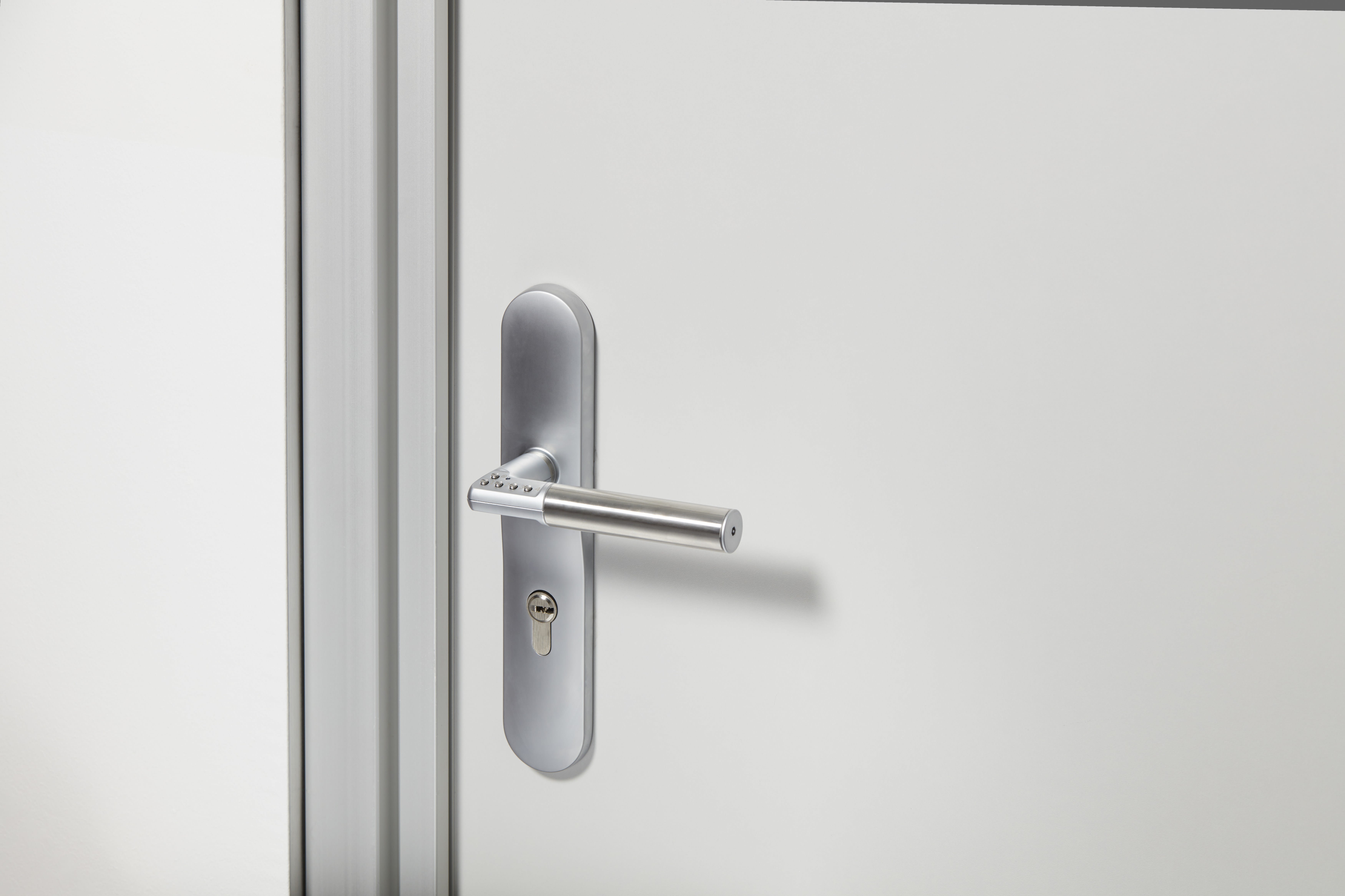 La plaque de sécurité Code Handle (Code-It) est une solution innovante, qui limite de façon simple et efficace les risques de vol. Le mécanisme de verrouillage automatique, intégré à la poignée, nécessite un code personnel pour actionner l'ouverture de la porte.