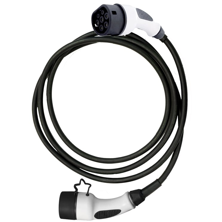 Cordon de recharge pour véhicules électriques - 22kVA - Prises Type 2 de chaque côté - 32A - Triphasé - Longueur 7 mètres - Connecteurs surmoulés