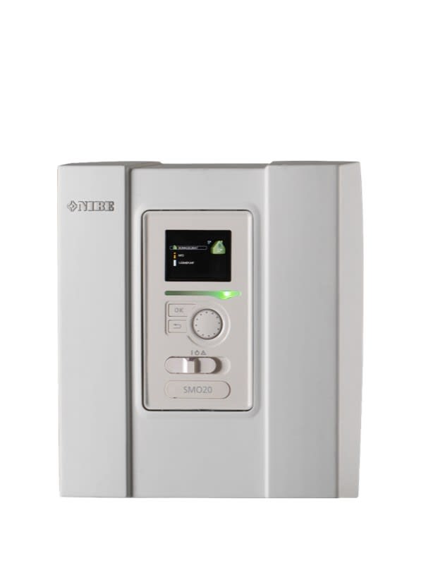 Le NIBE SMO 20 est un régulateur offrant des fonctions de base pour la commande des pompes à chaleur air/eau de NIBE. En combinaison avec la pompe à chaleur aérothermique, il constitue un système de climat intelligent et écoénergétique pour les habitations (individuelles) et les bâtiments (collectifs). Le régulateur est adapté à la composition d'une installation de pompe à chaleur simple. Grâce à l'utilisation d'une technologie intelligente, le NIBE SMO 20 permet de contrôler la consommation d'énergie. Le système de régulation efficace adapte automatiquement le climat intérieur pour un confort optimal tout en tenant compte de l'impact sur l'environnement.