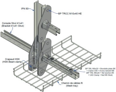 Bride pour fixation des consoles SU 35 et 45 sur IPN et IPE de dimensions comprises entre 80 et 300 mm, livrée avec boulons et accessoires