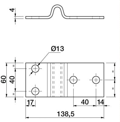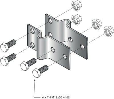 Bride VBIQ 80, hauteur 60mm, longueur 140mm, , finition GC. Pièce d'assemblage perpendiculaire pour montant I 80 et pendard HI 80, livrée avec 4 boulons TH M12x30 +HE GM.