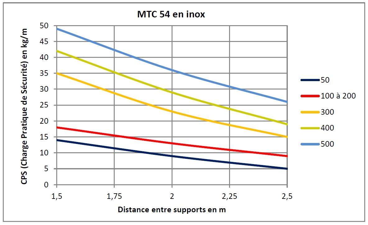 charge de travail sécurisée max. selon IEC 61537 avec dist. supports de 1,5m: