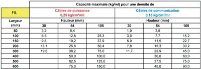 charge de travail sécurisée max. selon IEC 61537 avec dist. supports de 1,5m: