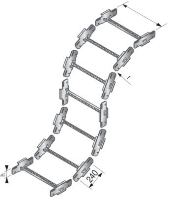 Chenillette pour la confection de concave ou convexe pour échelle à câbles Hercule sur chantier, rayon ajustable en rajoutant des chenillettes pour agrandir le rayon.