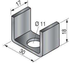 Clame S100U, finition GC Recommandée pour des montages de rails S100U au sol ou mural, UFL en dos de pendard