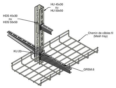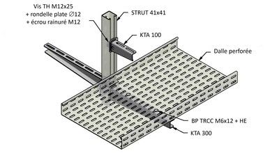 Console murale charge lourde ou montage sur pendard Strut 41x41 et pendard HU5050, pour Gamme tôle ou fil livré avec 2 boulons poêlier TRCC M6x12 + écrous HE pour Dalles perforées.