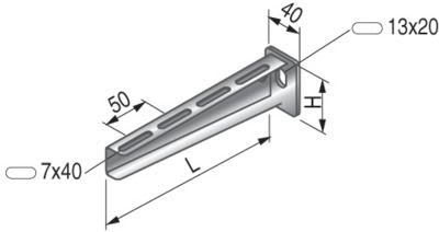 Console KTA, longueur 1000 mm, perforations oblongs 7x40 mm, finition GC