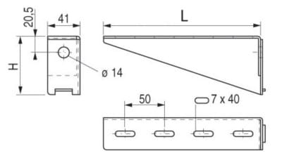 Console pour supportage moyen, fixation murale directe ou sur rail en pendard.