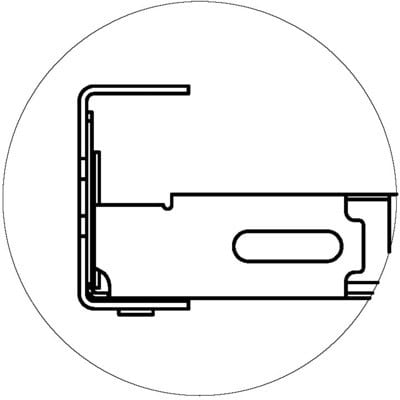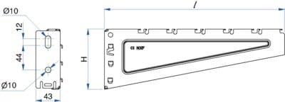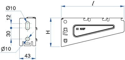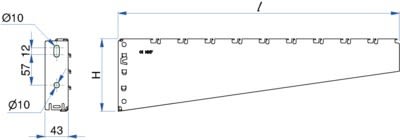 Console C400N, gamme S150U, perforations oblongs 7x25 mm, finition ZM, supportage moyen universel. Compatible dalles perforées et fil. Fixation murale directe ou sur rail S150U, rail ou pendard U 4530 et rail STRUT 41.