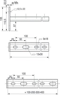 Console STRUT 41x21 longueur 350, perforations oblongs 9x18 mm et 13x30 mm, finition EZ, supportage lourd. Compatible tôle et fil