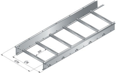 Echelles à câbles pour charges moyennes et lourdes de câbles, longueur standard 3 m, 6 m sur demande. Espacement des échelons 300 mm.
