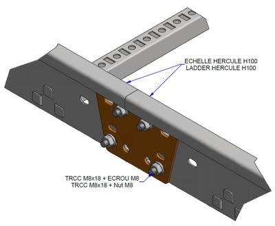 Eclisses plates d'échelles à câbles Hercule pour éclissage de longueurs d'échelles Hercule sur chantier, prévoir 4 boulons TRCC M8x18 par éclisse pour assemblage.