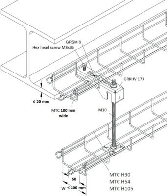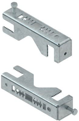 Etrier GRKHV, 2 en 1 : permet la fixation rapide des chemins de câbles fil ou tôle sur poutrelles métalliques de type IPN, IPE, HEA, HEB, à l'horizontale ou à la verticale. Peut se monter à l'intérieur comme à l'extérieur de la poutrelle.