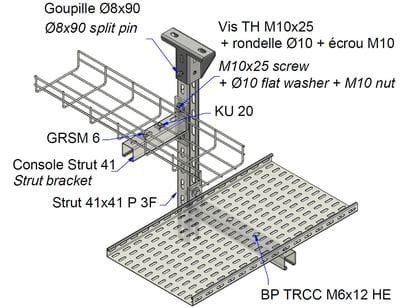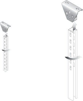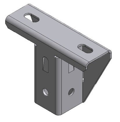 Montage multidirectionnel, sécurisation par goupille possible, simple d'utilisation : un coup de maillet suffit. S'utilise en montage pendard avec le rail STRUT 41 perforé 3 faces.