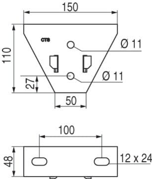 Gousset Strut 41 multidirectionnel pour confection de pendard Simple sur chantier. Fixation avec 2 Vis TH M10 et 2 écrous losange ressort M10 STRUT 41.