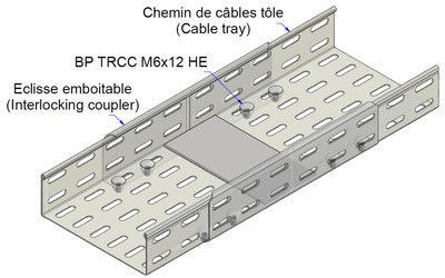Jonction de fond de dalle FD pour tout type de dalles, rigidifie le chemin de câbles au droit des éclisses. Compatible avec les éclisses emboîtables EE et les éclisses cornières EC.