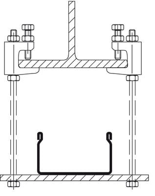 Pour accrochage de tige filetée sur poutrelle métallique horizontale.