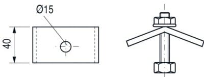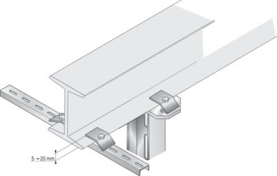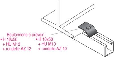 Pince de serrage, épaisseur de serrage de 5 à 20 mm. Pour fixation de rails STRUT sur IPN. Prévoir vis TH M12x50 + écrou cranté HE M12.
